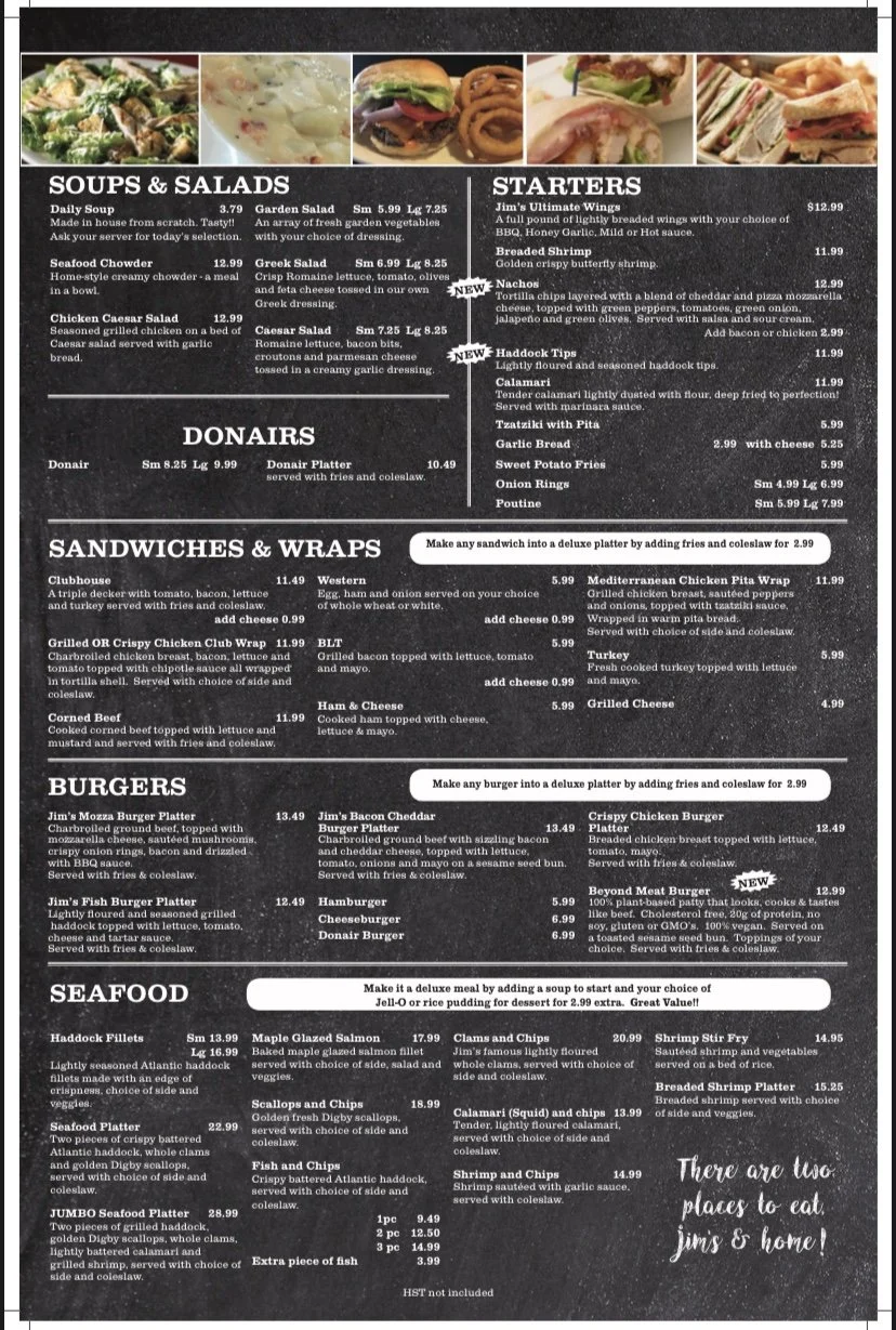 Jim S Family Restaurant Menu In Halifax Nova Scotia Canada